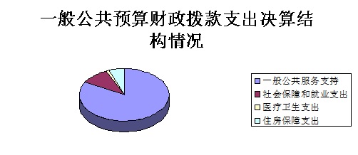 2017年一般公共预算财政拨款支出1907.41万元,主要用于以下方面:一般公共服务支出1582.40万元,占82.96%;社会保障和就业支出197.81万元,占10.37%;医疗卫生支出23.21万元,占1.22%;住房保障支出103.99万元,占5.45%。