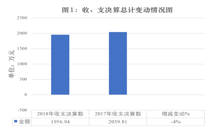 2018年度收、支总计1956.94万元。与2017年相比,收、支总计各减少82.87万元,下降4%。主要变动原因是2017年跨年支付上年全市国有企业审计费用。