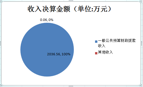 2018年本年收入合计2036.62万元,其中:一般公共预算财政拨款收入2036.56万元,占100%;政府性基金预算财政拨款收入0万元,占0%;国有资本经营预算财政拨款收入0万元,占0%;事业收入0万元,占0%;经营收入0万元,占0%;附属单位上缴收入0万元,占0%;其他收入0.06万元,占0%。