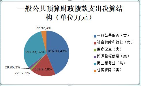 2018年一般公共预算财政拨款支出1873.06万元,主要用于以下方面:一般公共服务(类)支出816.08万元,占43%;社会保障和就业(类)支出338.9万元,占18%;医疗卫生(类)支出22.97万元,占1%;资源勘探信息(类)支出29.86万元,占2%;商业服务业(类)支出592.33万元,占32%;住房保障(类)支出72.92万元,占4%。