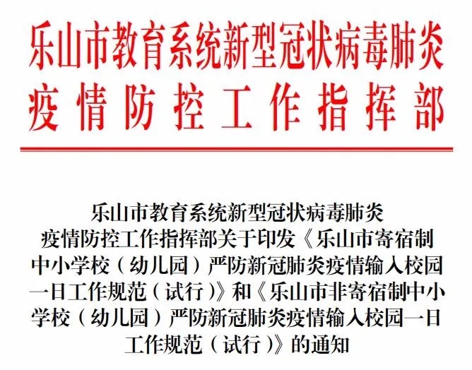 日前,乐山市教育局制定出台了《中小学校严防新冠肺炎疫情输入校园一日工作规范》。