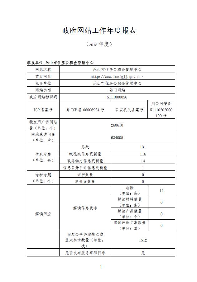 乐山市住房公积金管理中心政府网站工作年度报表(2018年度)