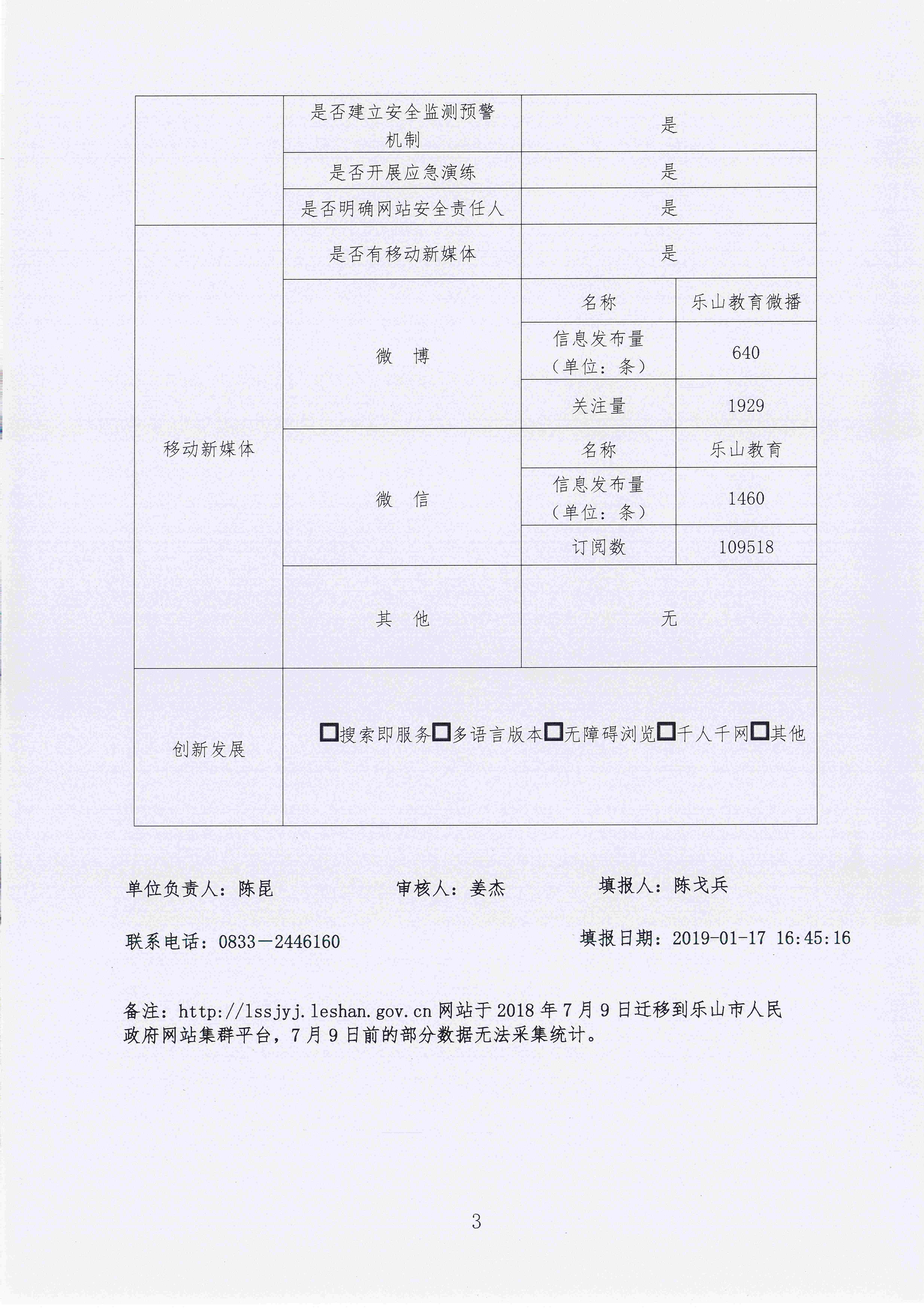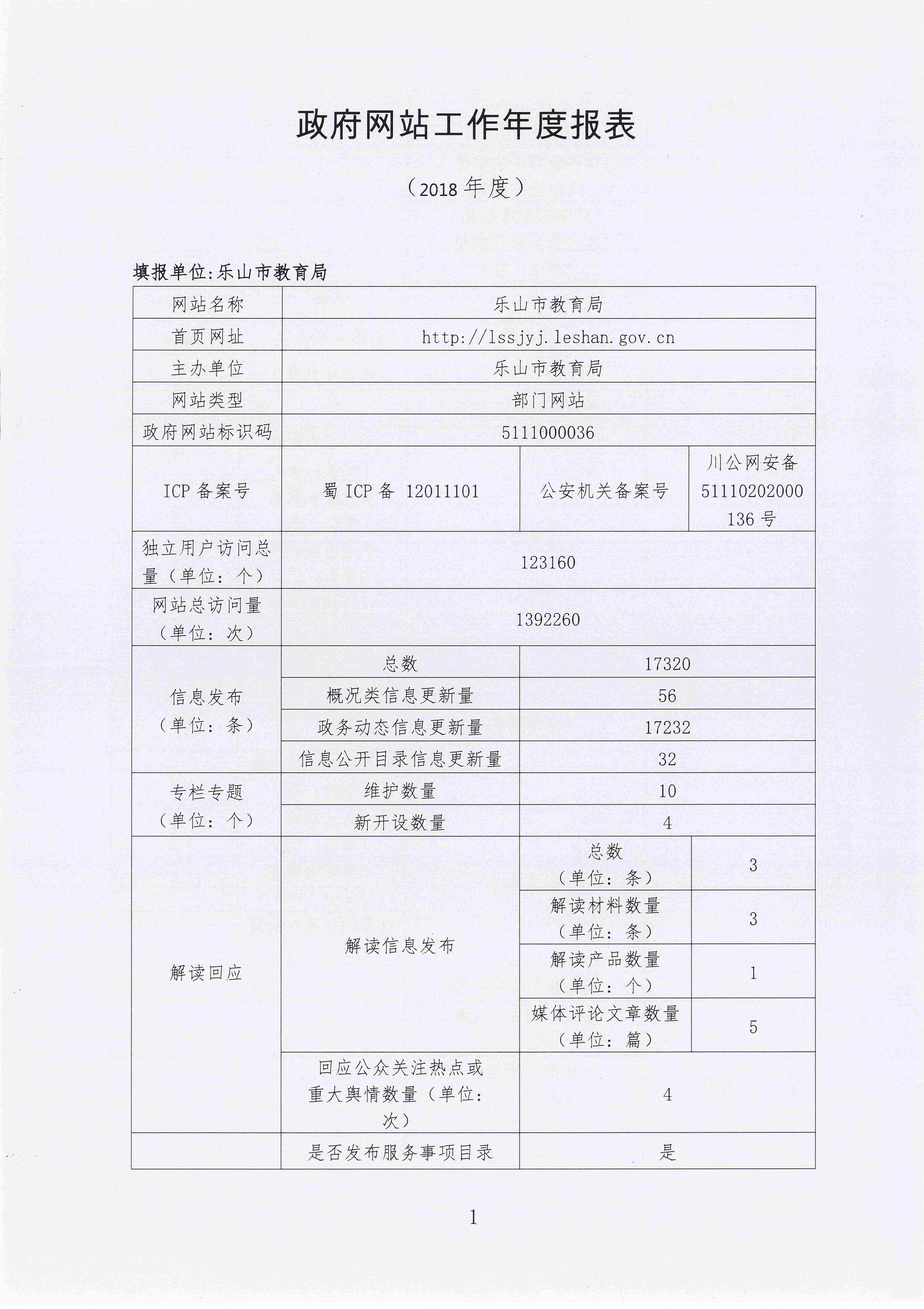 2018年度乐山市教育局政府网站工作年度报表