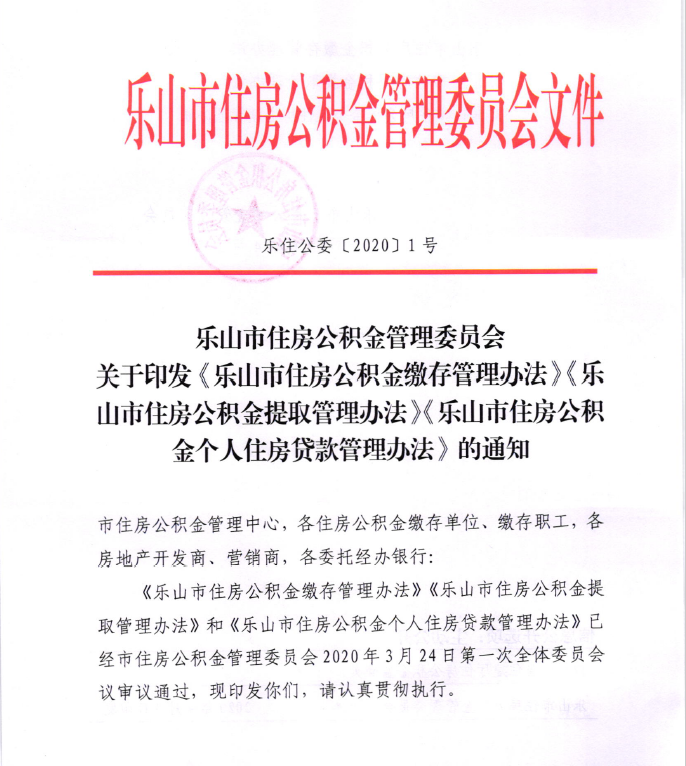 乐山市住房公积金管理委员会关于印发《乐山市住房公积金缴存管理办法》《乐山市住房公积金提取管理办法》《乐山市住房公积金个人住房贷款管理办法》的通知
