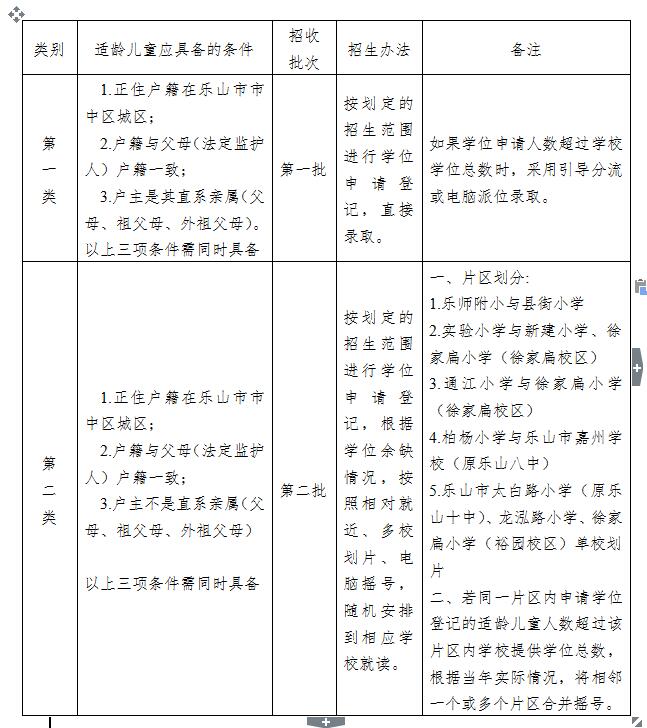 (一)乐山市市中区城区公办小学新生招生办法