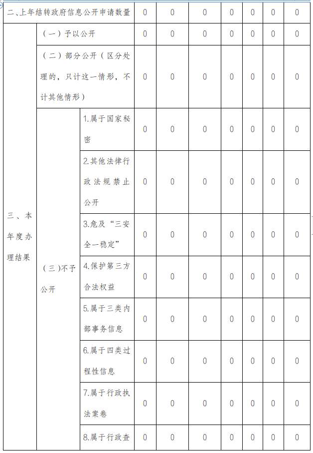 | (二)部分公开(区分处理的,只计这一情形,不计其他情形) | 0 | 0 | 0 | 0 | 0 | 0 | 0 | ||