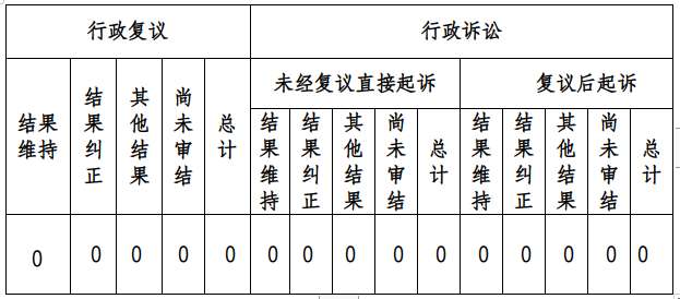 (六)复议、诉讼和申述情况。全年无行政复议、行政诉讼事项。