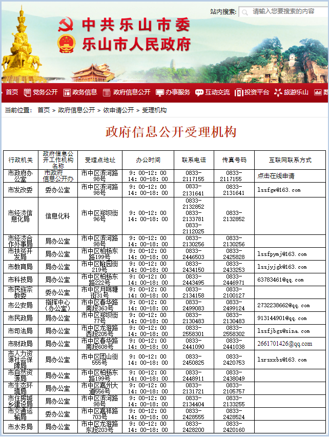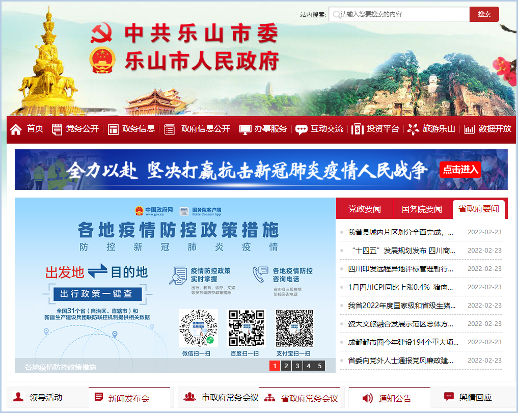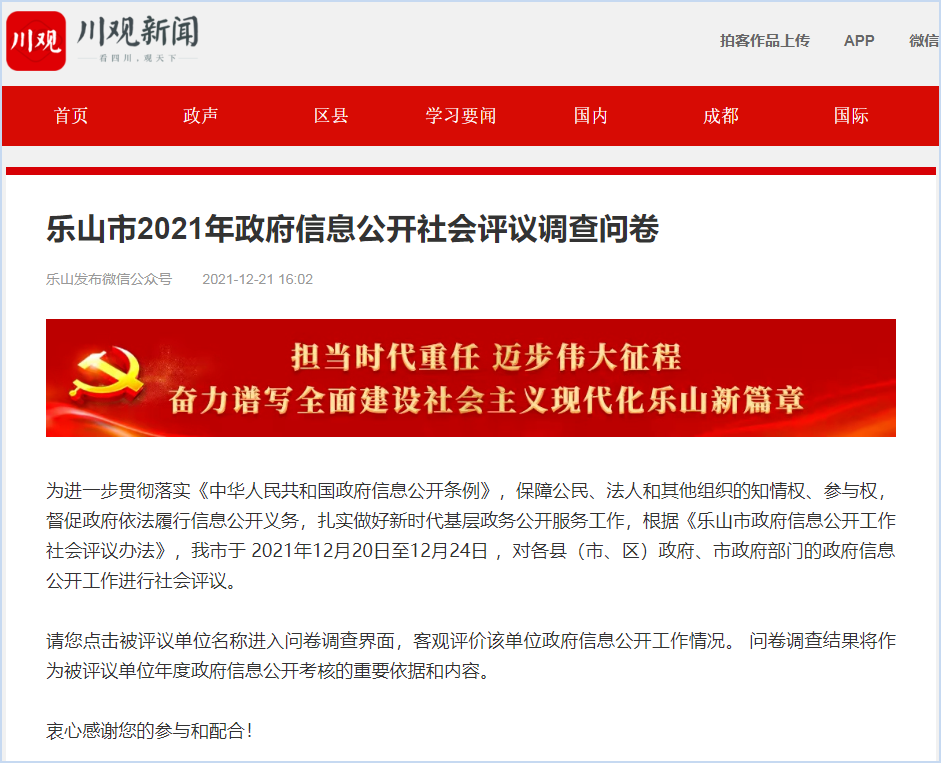 如需了解更多政府信息,请登录“中共乐山市委 乐山市人民政府”网站(网址:https://www.leshan.gov.cn/)查询。