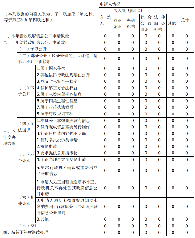 三、收到和处理政府信息公开申请情况