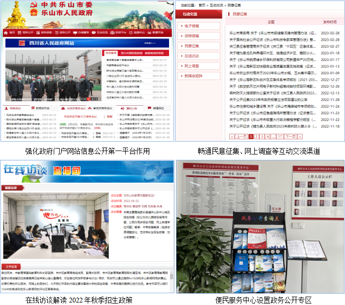2022年,乐山市坚定以习近平新时代中国特色社会主义思想为指导,深入学习贯彻党的二十大和省第十二次党代会、市第八次党代会精神,严格对照执行《条例》规定要求,认真履行政府信息公开工作职责,积极助推经济社会高质量发展。