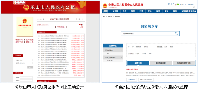 (三)政府信息管理方面。认真执行公文公开属性源头认定制度,科学规范确定公开范围和公开方式。通过政府公报、政府网站、政务新媒体和报刊、电视等传统媒体,集中发布政府信息公开内容。在“智乐山”APP、“乐山发布”政务微信等开设数字公报栏目,全年刊发政府公报12期,全部上网主动公开。推进政府规章集中统一查询,将3件现行有效规章纳入国家规章库。